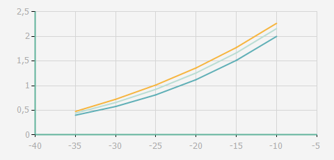 | 蒸發(fā)溫度 | 制冷量+/-5% | 能耗+/-5% | 現(xiàn)在能效+/-5% | 氣體流速+/-5% | 能效+/-7% | ||||