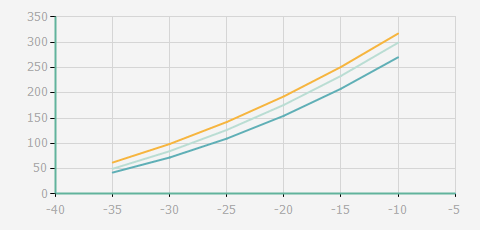 | 蒸發(fā)溫度 | 制冷量+/-5% | 能耗+/-5% | 現(xiàn)在能效+/-5% | 氣體流速+/-5% | 能效+/-7% | ||||