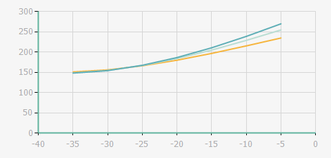 | 蒸發(fā)溫度 | 制冷量+/-5% | 能耗+/-5% | 現(xiàn)在能效+/-5% | 氣體流速+/-5% | 能效+/-7% | ||||