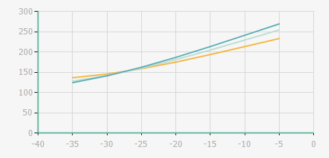 | 蒸發(fā)溫度 | 制冷量+/-5% | 能耗+/-5% | 現(xiàn)在能效+/-5% | 氣體流速+/-5% | 能效+/-7% | ||||